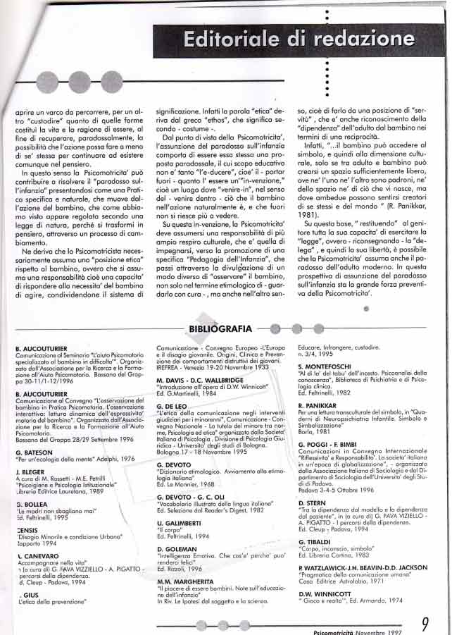 “L’assunzione del paradosso” Psicomotricità, Novembre ’1997 – di M. Piscitello e M.V. Rinaldi